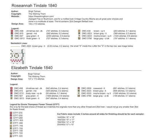Tindale Sisters 1840 Sampler Thread Pack & Chart