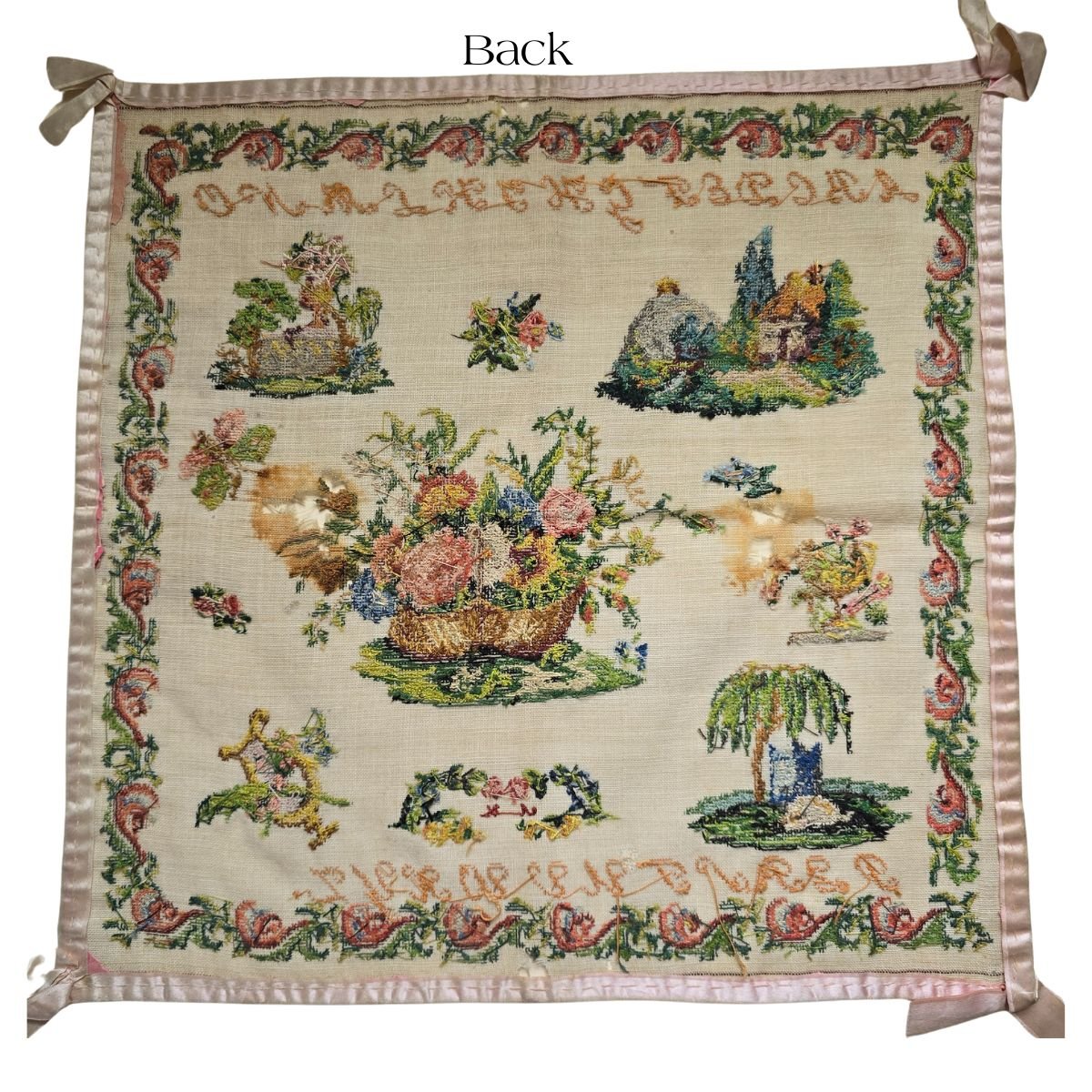 Edge trimmed in pale pink silk.