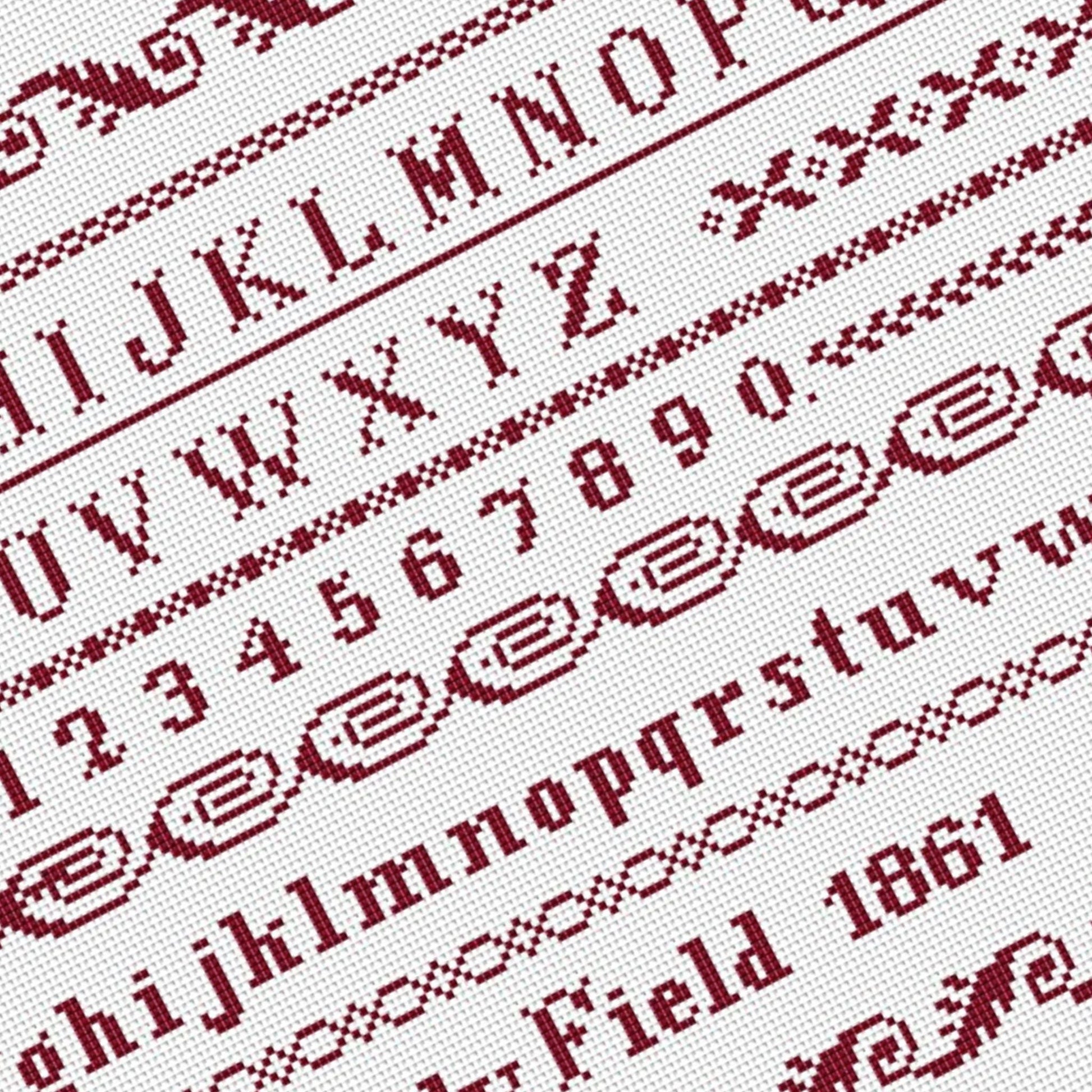 This sweet little redwork sampler is an original design and was inspired by my Georgian Miniature redwork sampler from an earlier period. I think it would make an excellent addition to any sampler wall, especially those that collect red samplers.