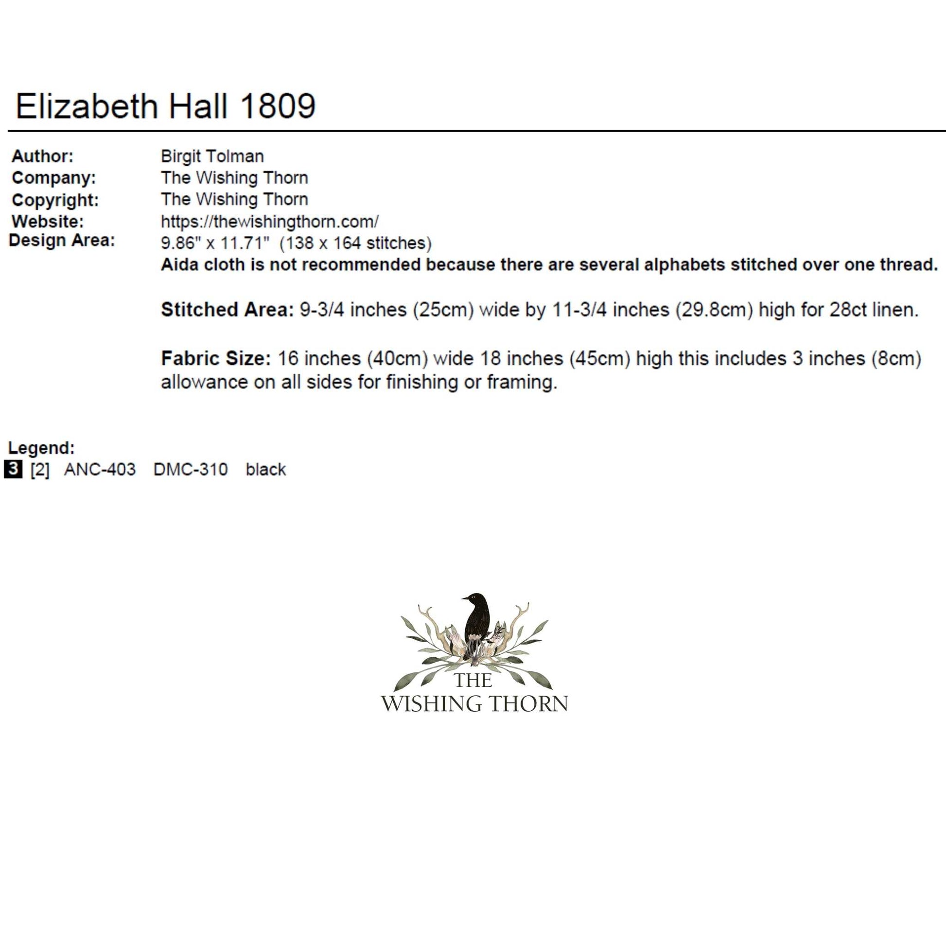 Elizabeth Hall 1809 Sampler Pattern PDF