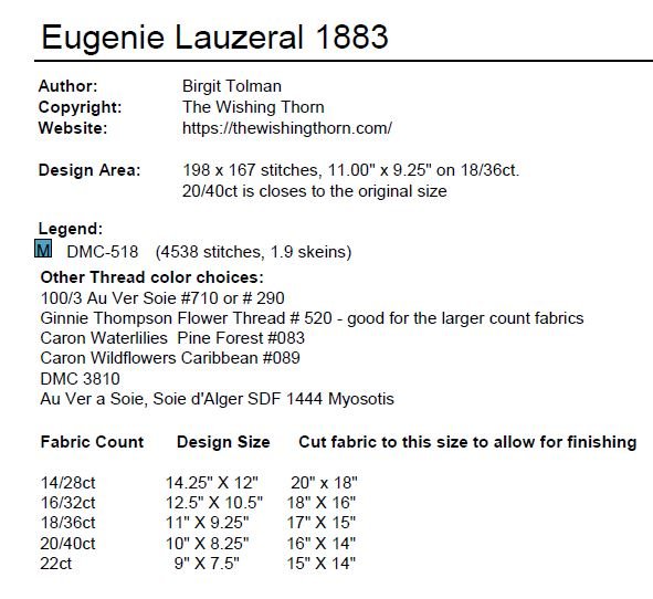 Eugenie Lauzeral 1883 Sampler Pattern PDF