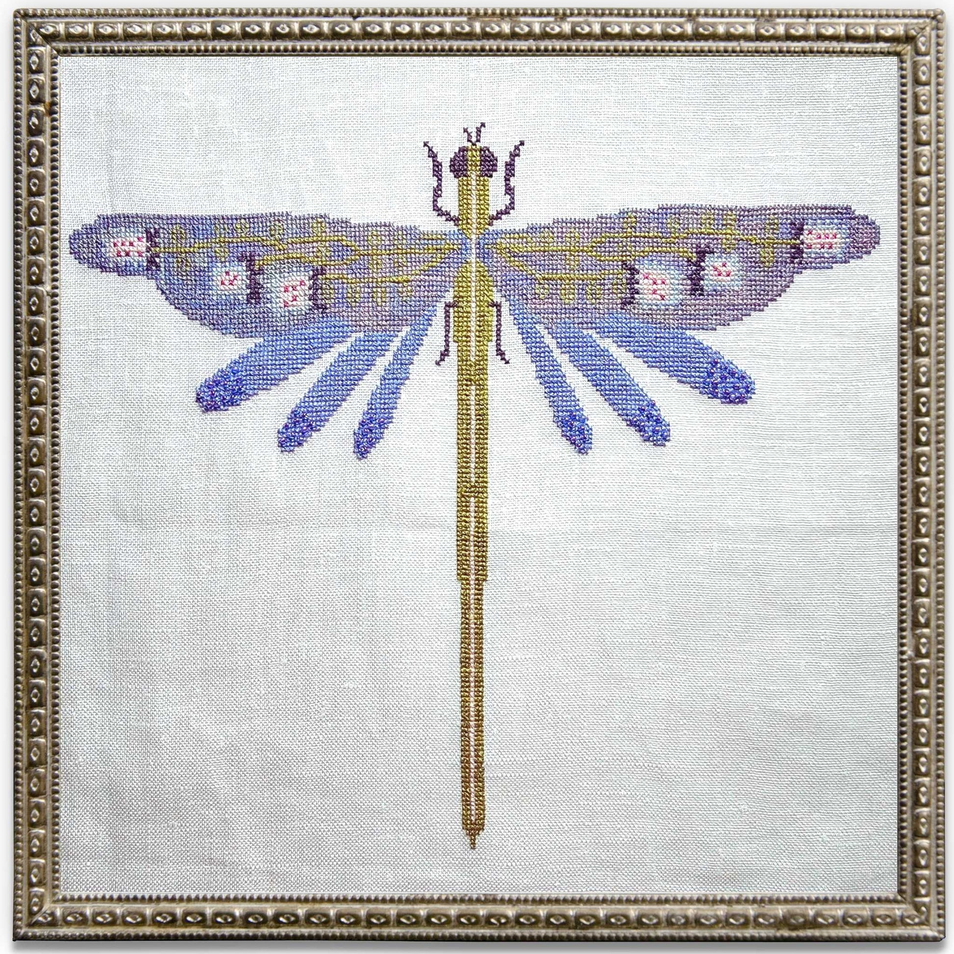 A fun vibrant Dragonfly that is easy to stitch for a beginner or advanced cross stitcher. A great choice for a children's room or any minimalist modern space. Part of a collection of bugs. An easy choice for Aida cloth or evenweave.