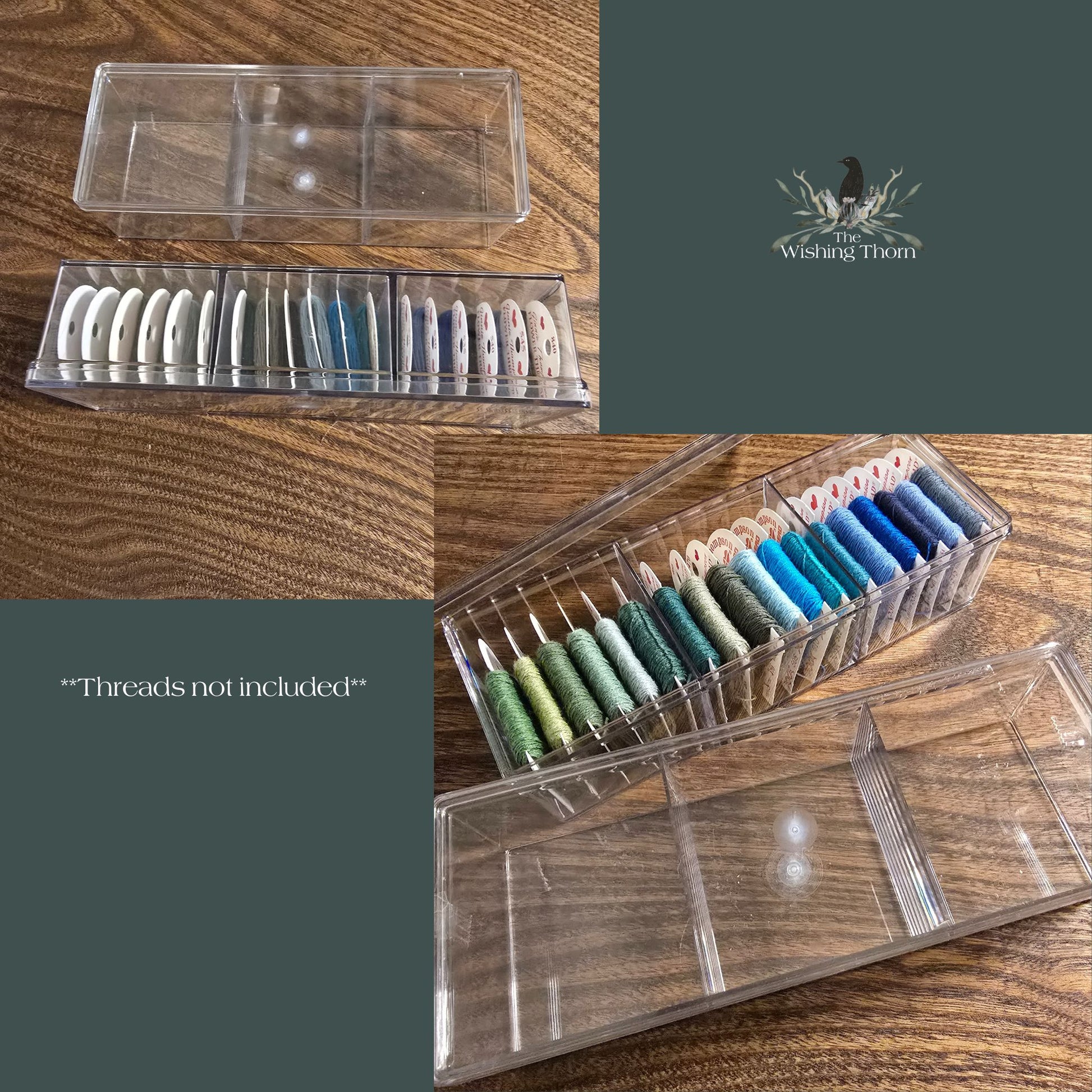 A perfect set of plastic 3-compartment storage trays, help you to keep your threads organized. Great for storing buttons, bobbins, needles and any other bits and bobs.