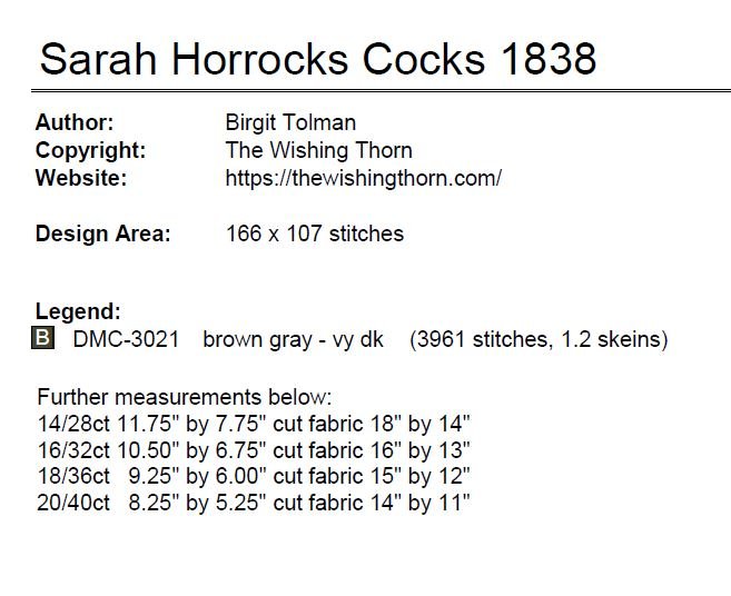 Sarah Horrocks Cocks 1838 Sampler Pattern