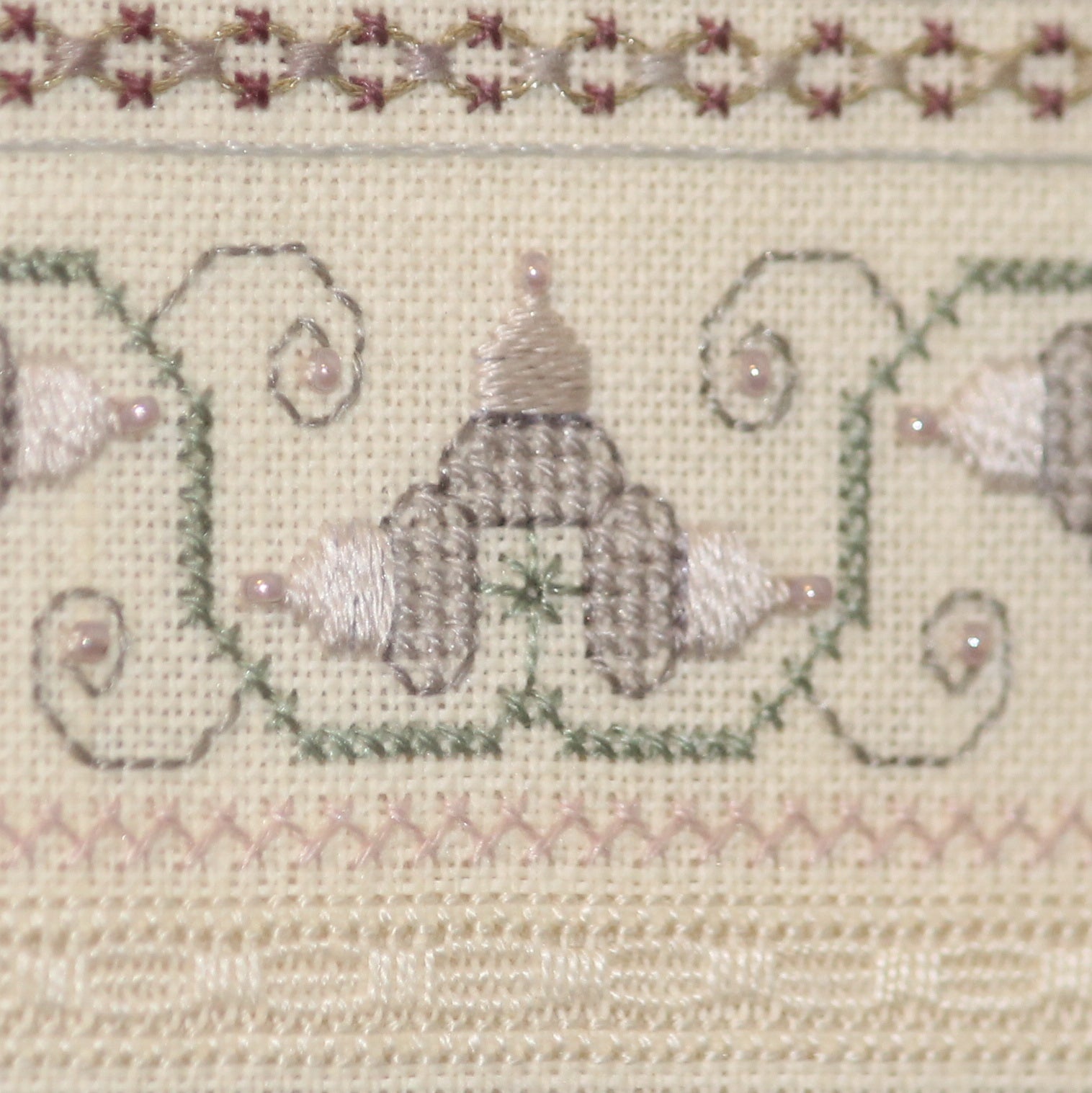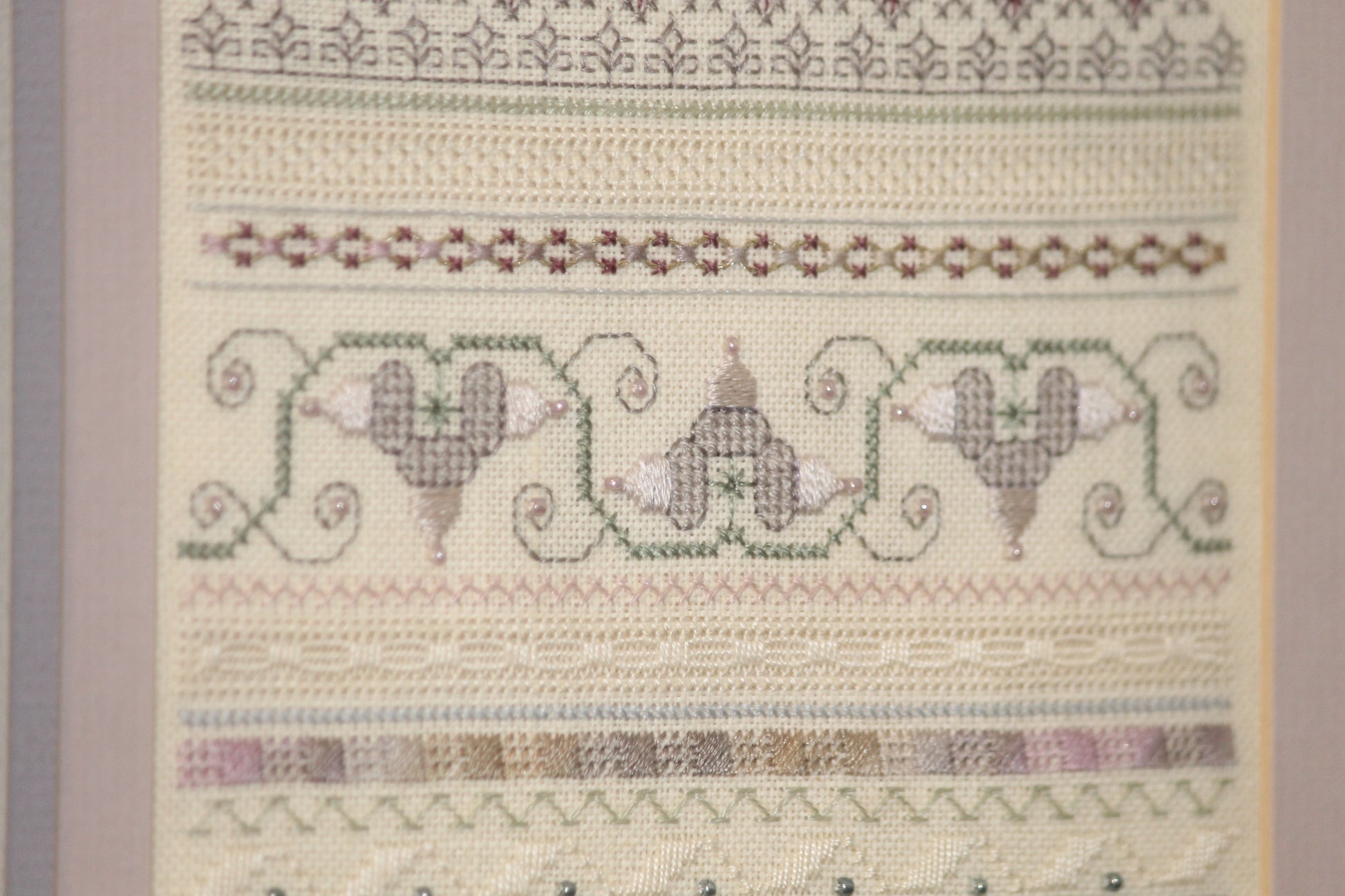 This is not a sampler for beginners to stitching on linen. Most of it is very easy to complete if you are comfortable stitching on linen with different types of threads.