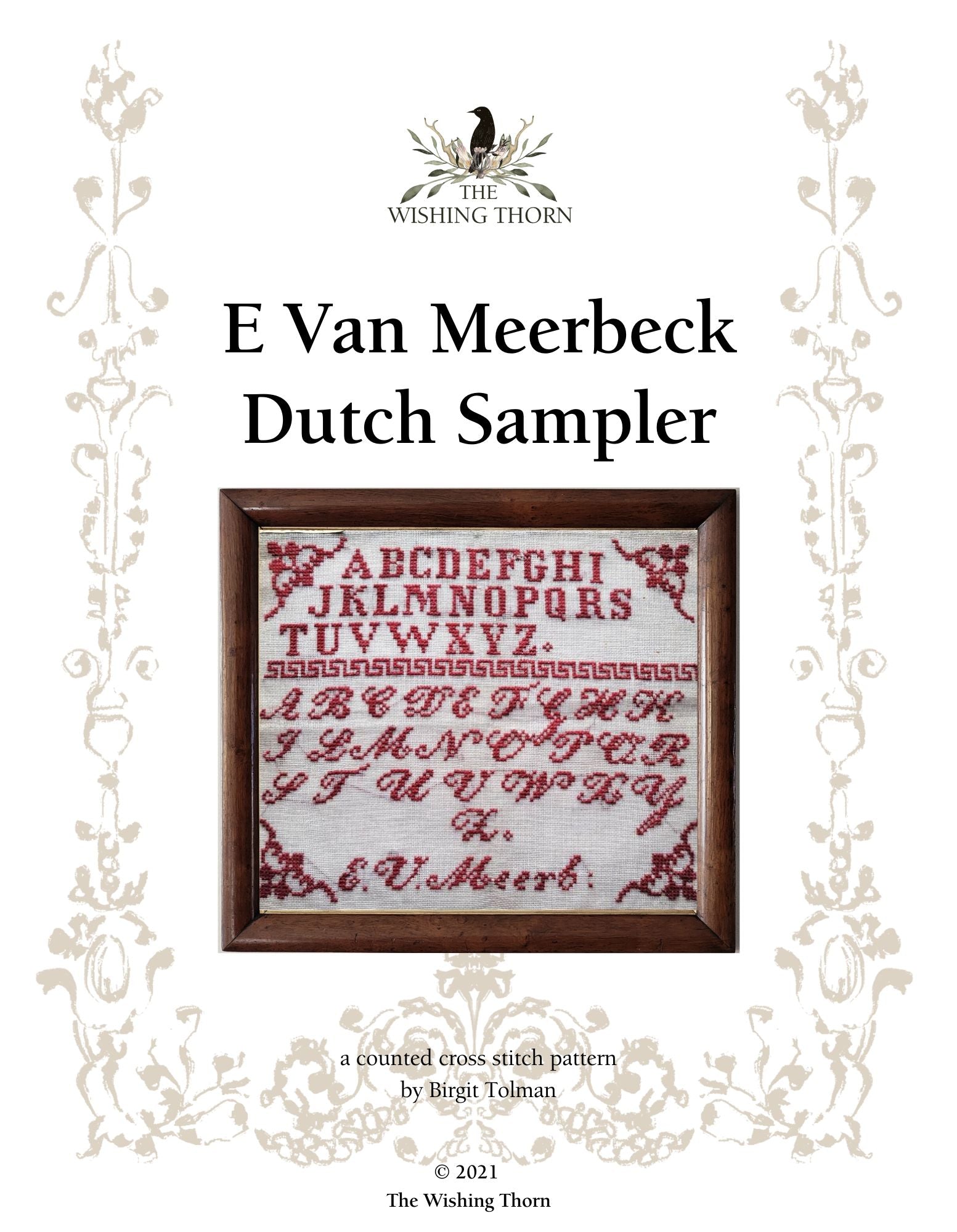 This early 19th-century Dutch sampler is 11 x 9 inches and was stitched on a pale gray 12 ct canvas-type material.