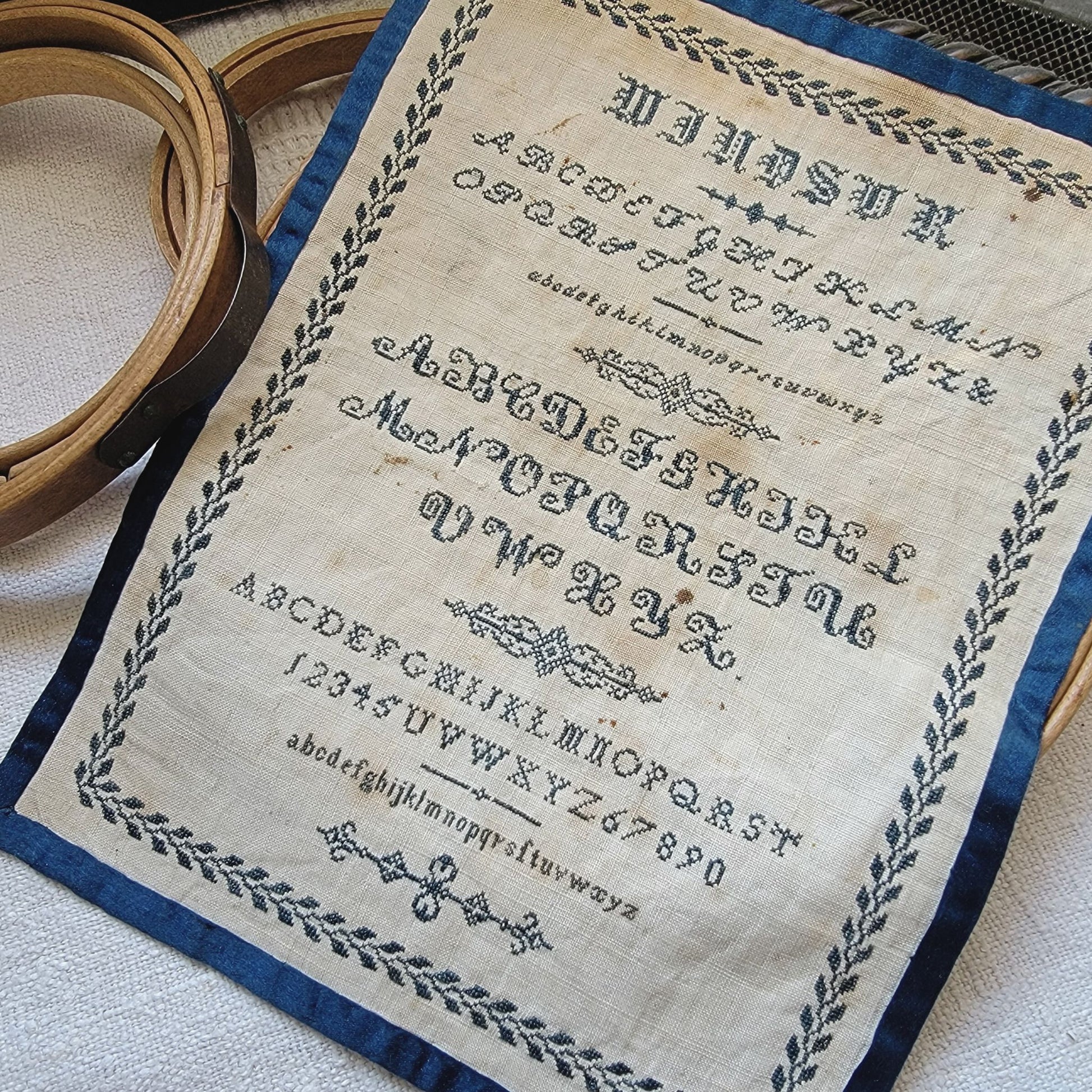 This charming sampler is a lovely example of the fine artistry of hand stitching. The sampler is made up of various blue alphabets, with good composition and design. The original was stitched on a tiny count 70/68ct. This is a great project to work on for your blue sampler collection or if you need something new to add to your stash.